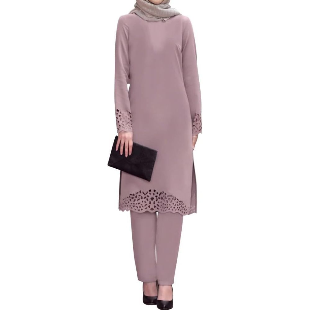 Women's Muslim 2 Pieces Sets Long Sleeve Hollow